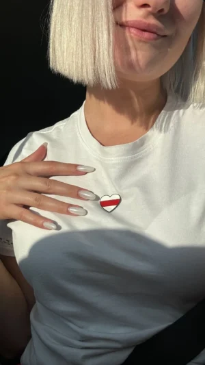 Значак металічны ў форме сэрца з бела-чырвона-белым сцягам